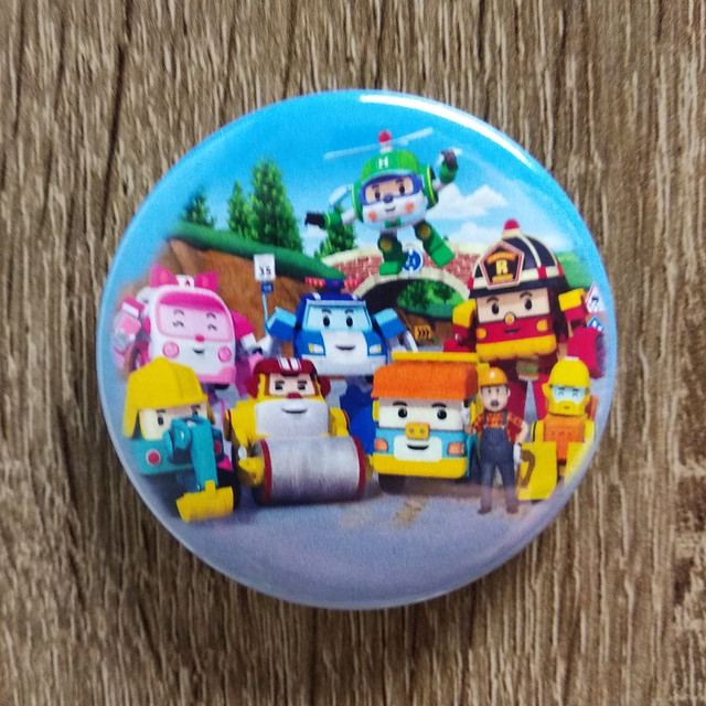 Металевий значок з шпилькою діаметром 50 мм або 58 мм. На значку зображено героя улюбленого мультика "Робокар Поллі".